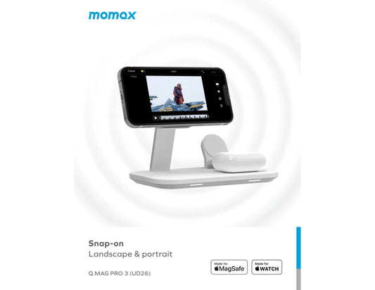 حامل شحن لاسلكي موماكس كيو ماج برو 3 بقوة 25 واط، 3 في 1 ماج سيف - UD26W