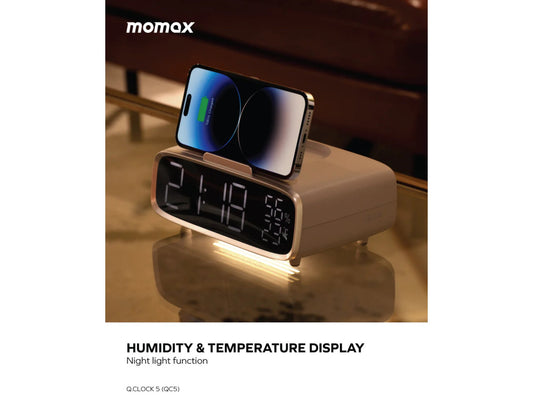ساعة منبه رقمية Momax Q.Clock5 مزودة بشحن لاسلكي - QC5W