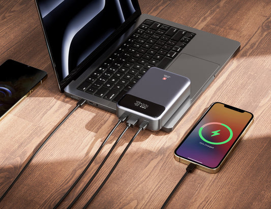 بنك طاقة سويسري عسكري بقوة ١٠٠٠٠ مللي أمبير/ساعة بمنفذ USB-C وقوة ٢٠ واط - SM-PB-10K-2C1A