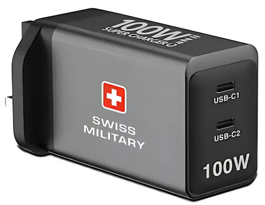 شاحن سويسري عسكري فائق 100 واط GaN II بمنفذ USB-C مزدوج - SM-PH-GaN II-2C-GRY