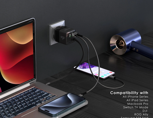 شاحن سيارة Vyvylabs Rapid Energy Display بقوة 125 وات A+2C VJSNF-BK