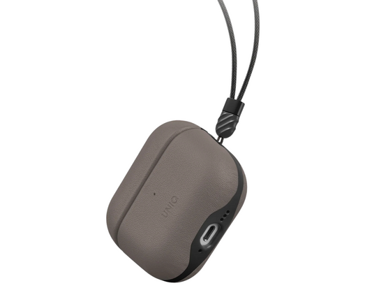 حافظة جلدية نباتية من Uniq Lyden Duo Series (رمادية) لسماعات AirPods (الجيل الرابع)