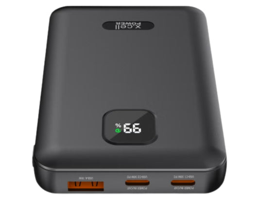 بنك طاقة X.Cell بسعة 10,000 مللي أمبير/ساعة مع شاشة LED - منفذ USB-C PD مزدوج بقوة 30 وات + منفذ USB-A بقوة 18 وات - أسود