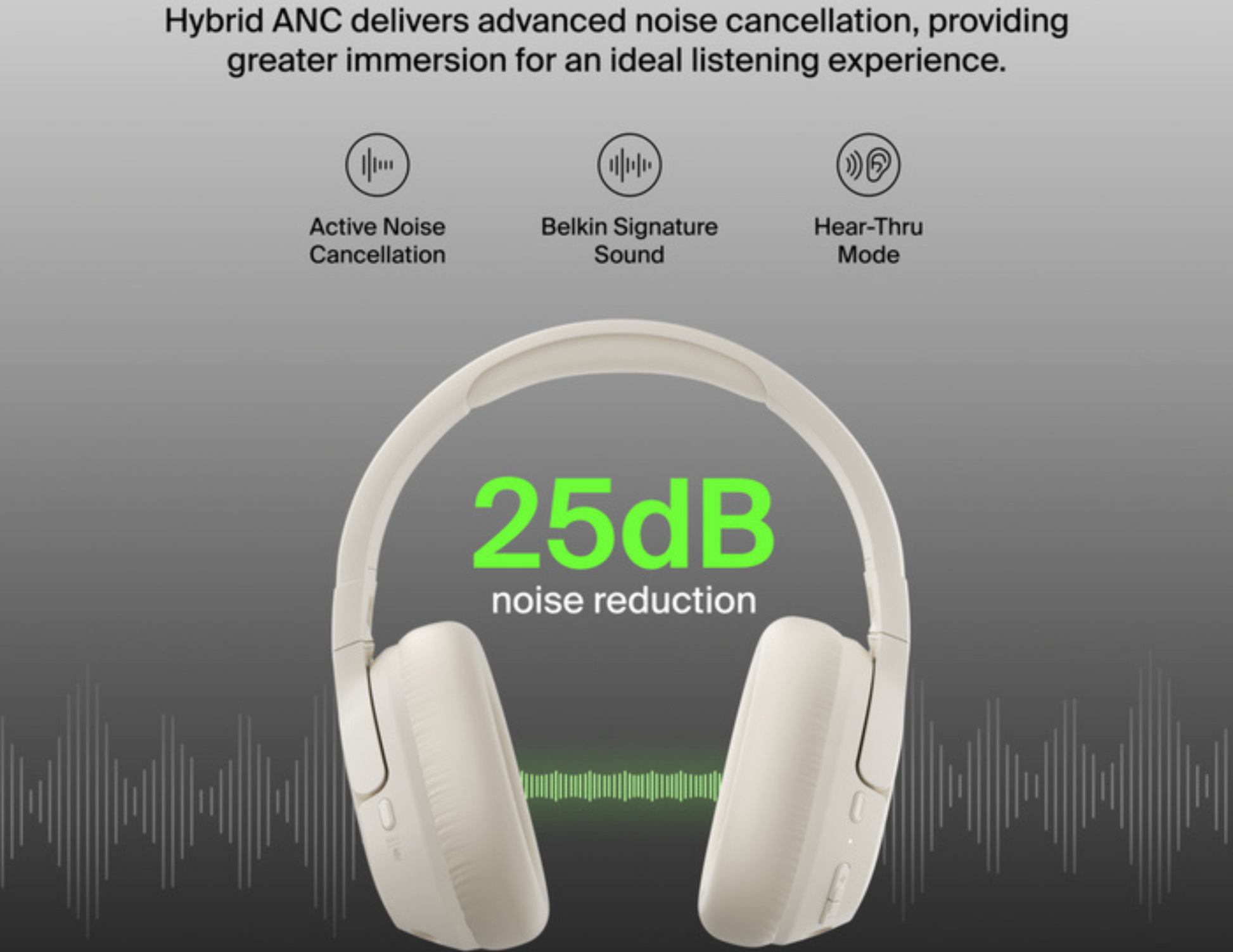 سماعات رأس Belkin SoundForm Isolate Noise Cancelling Over Ear | AUD008fqBK (أسود)، AUD008fqSA (رملي)