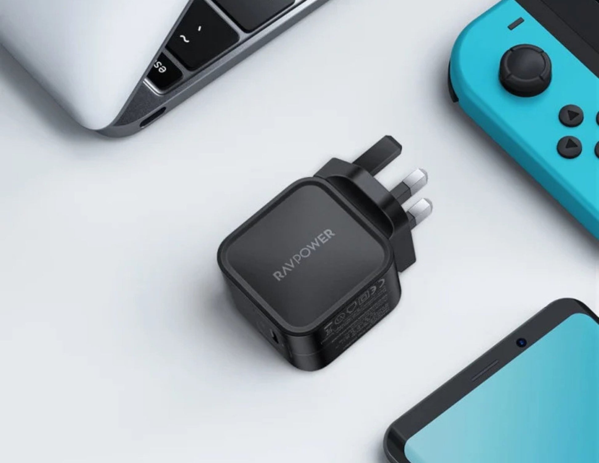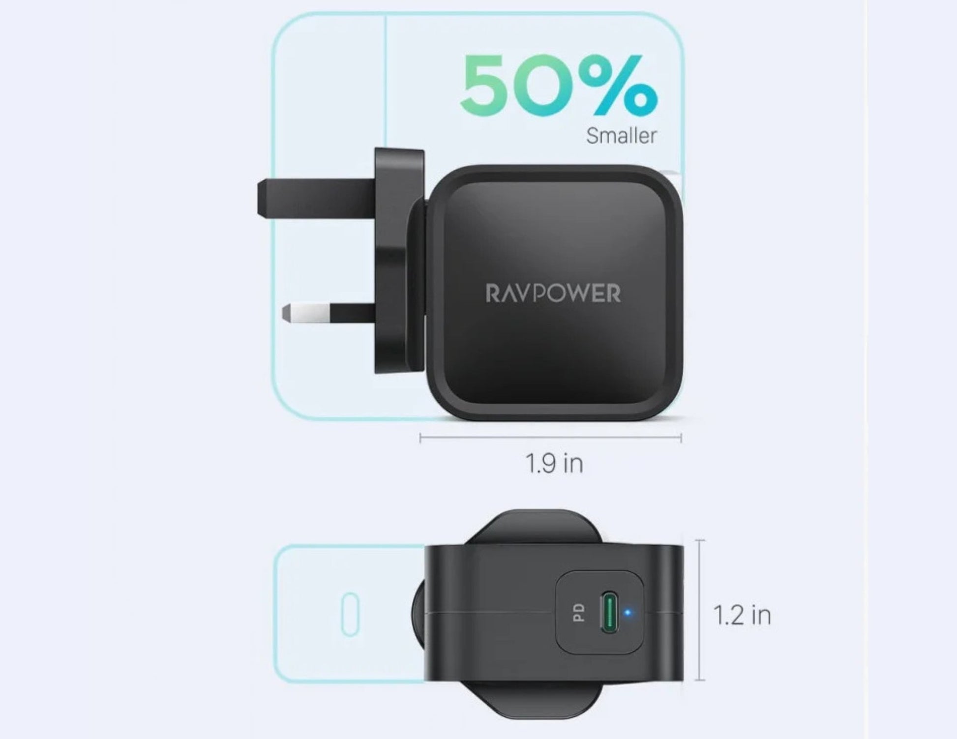 شاحن حائط RAVPower PD Pioneer 61W GaN - RP-PC112 أسود، قابس المملكة المتحدة