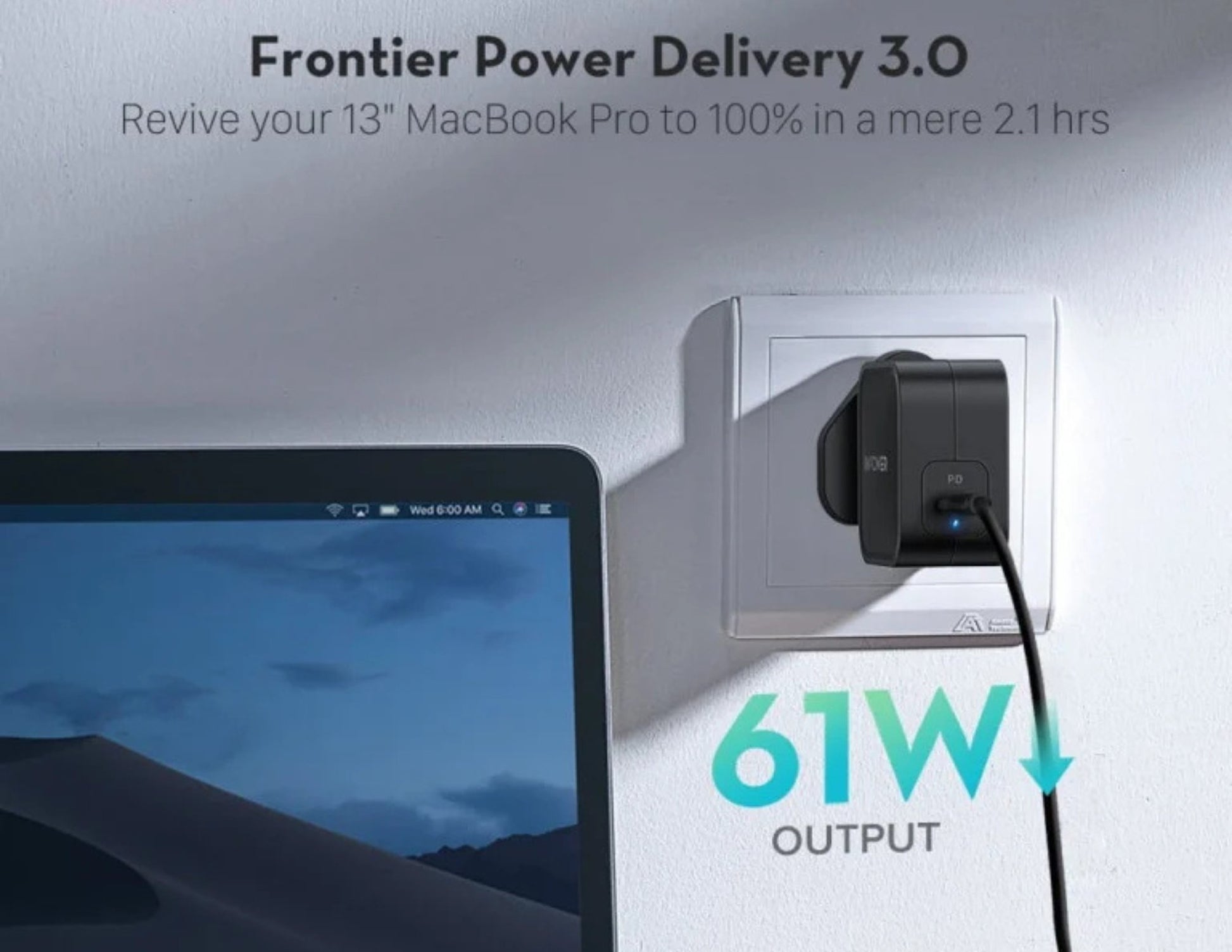 توصيل طاقة USB-C بقوة 61 واط - مثالي لأجهزة MacBook Pro وMacBook Air وأجهزة الكمبيوتر المحمولة التي تعمل بنظام Windows USB-C