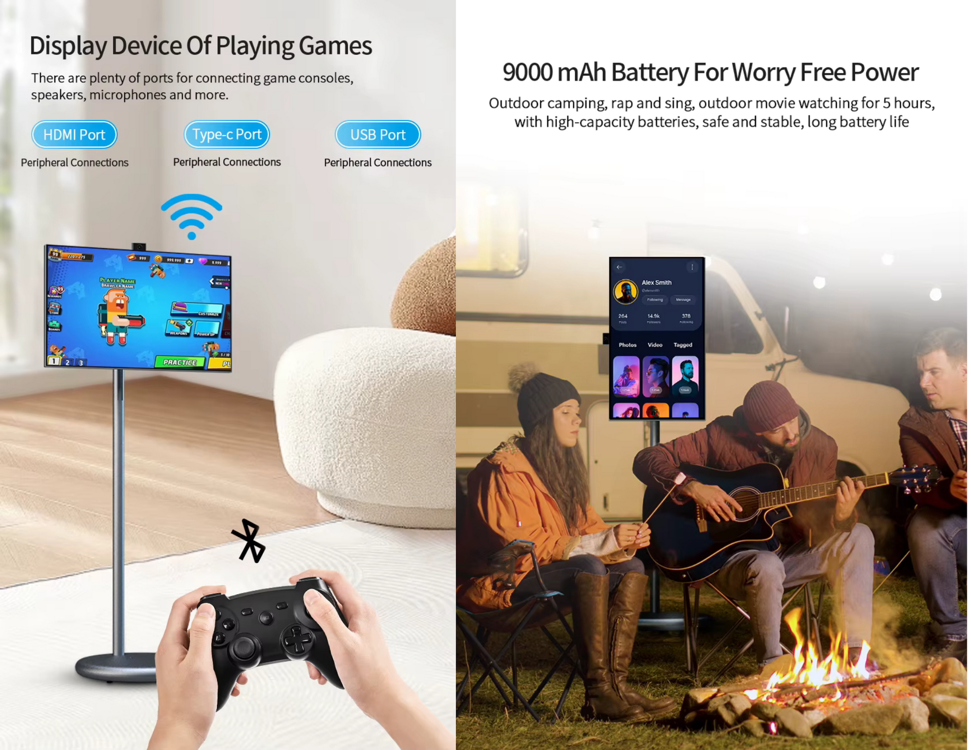 تزيل هذه الشاشة اللمسية المحمولة مقاس 27 بوصة الخط الفاصل بين التلفزيون الذكي والكمبيوتر اللوحي بشاشة كبيرة ، وتوفر انعكاسًا للشاشة، ومنافذ من النوع C، وكاميرا ويب 2K اختيارية، وحاملًا قابلًا للتعديل ، مما يجعلها مثالية للعمل أو الألعاب أو الترفيه في أي مكان.