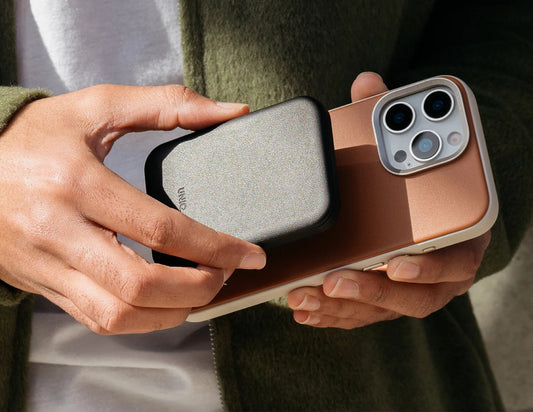 Uniq Lexa 5000 Premium Leatherette Magnetic Power Bank – Black & Caramel