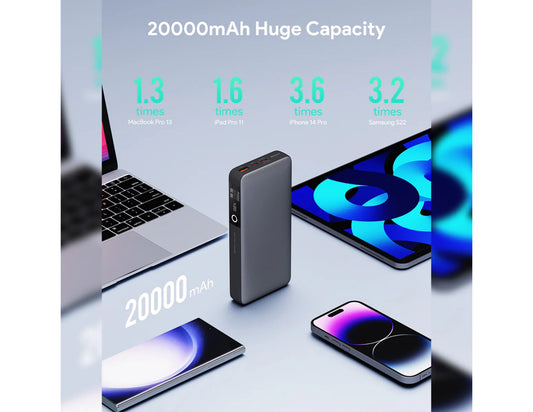 Vyvylabs Power Lite Digital Display Power Bank 20000mAh 65W with C+L Fast Charging Cable – VBQ08-TN