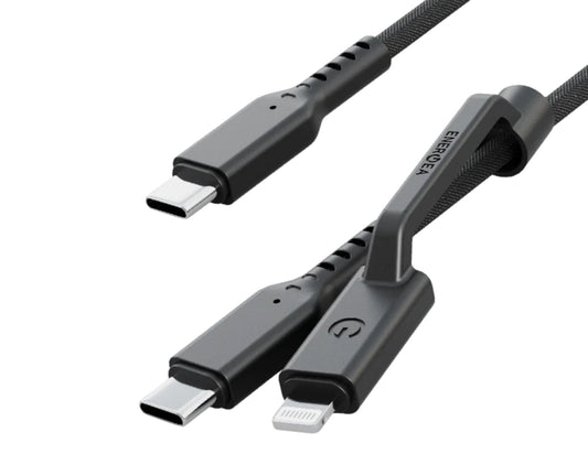 Energea Flow Duo 2-in-1 USB-C to USB-C + Lightning Cable 1.5M – CBL-FLDUO-BLK150