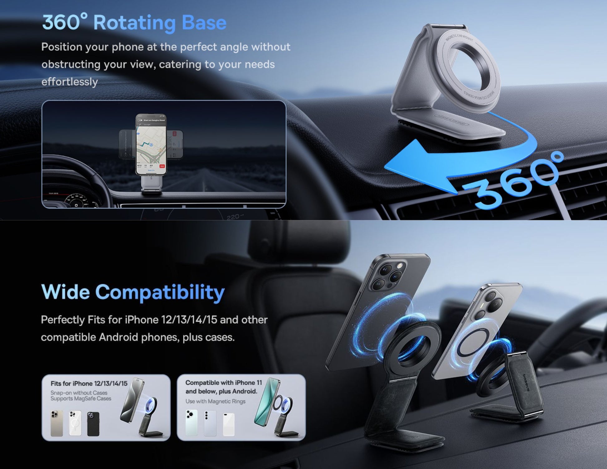 ✅ Powerful Magnetic Suction — Firmly holds smartphones of all sizes.