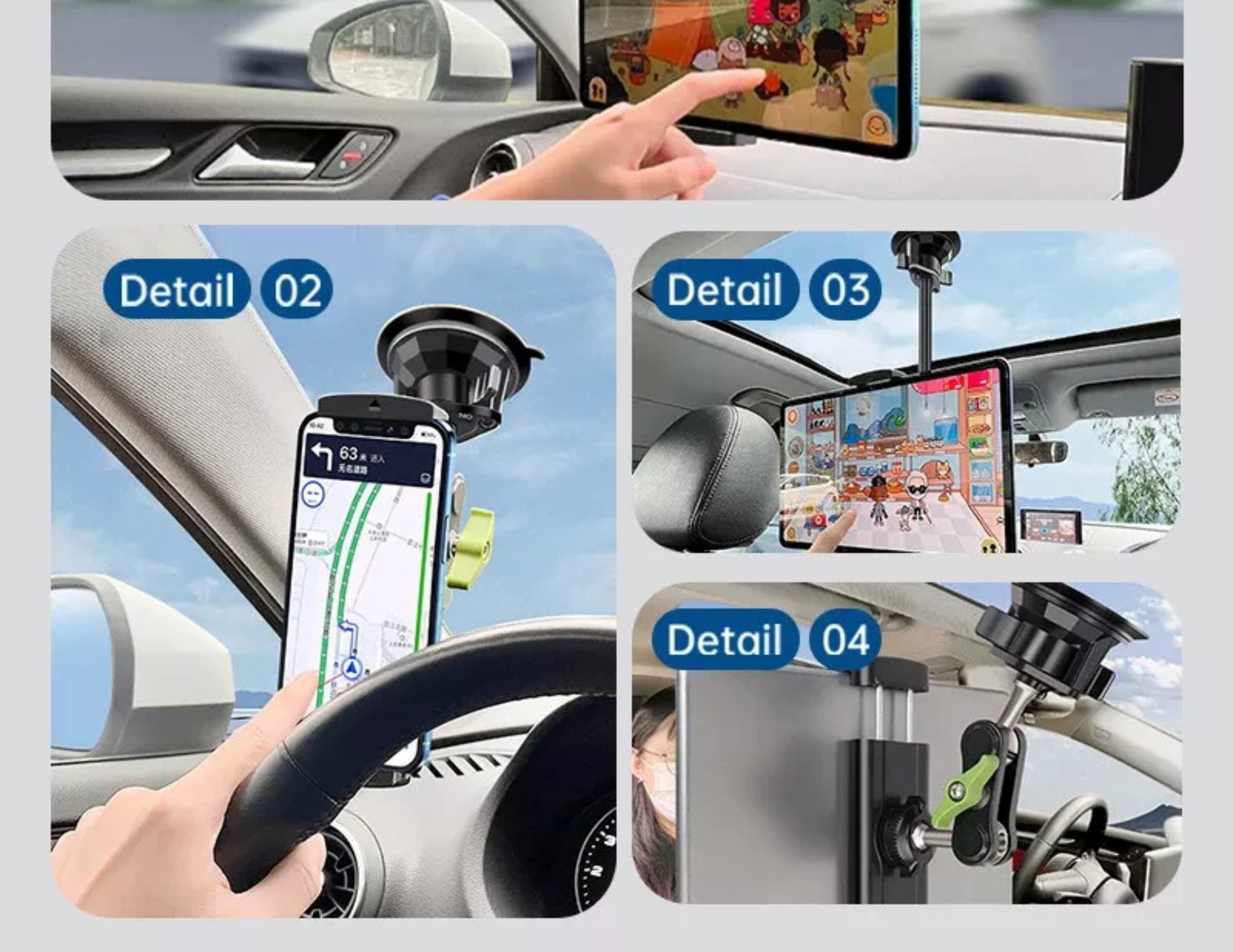 - Features: Strong suction cup, 360° rotation, adjustable ball head arm