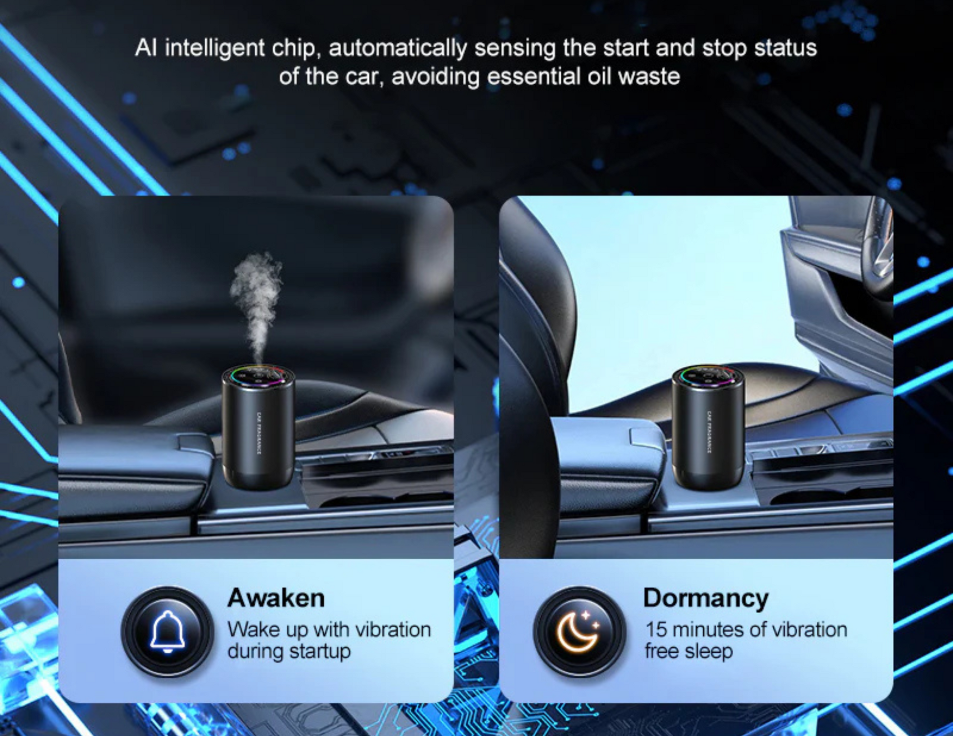 Intelligent Start/Stop: Automatically sprays fragrance when the car starts and stops.
