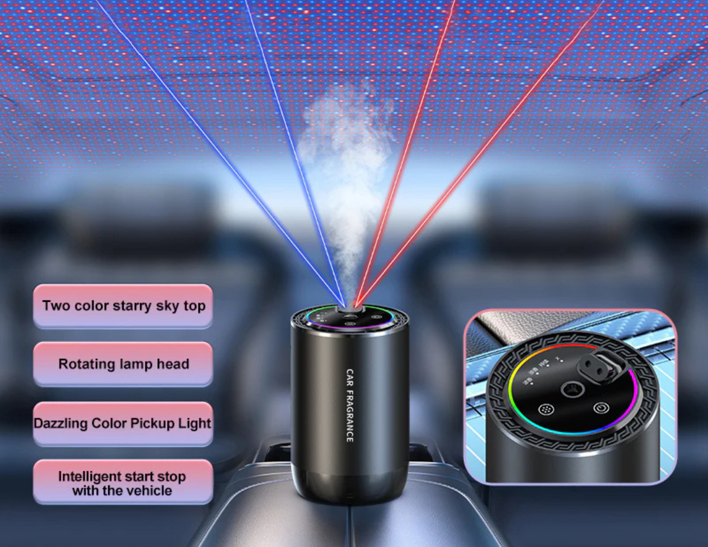 Sound Pickup Dual Color Starry Sky Projection Aromatherapy Diffuser - Car Fragrance