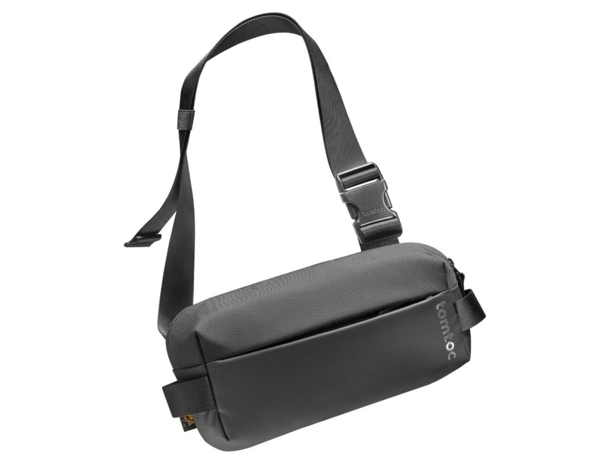 The bag’s ergonomic design allows it to stay snug against your body while on the go. Duraflex buckles make it easy to take off quickly, especially in security lines. The unique design helps keep the bag horizontal when accessing your items, preventing accidental spills or drops.