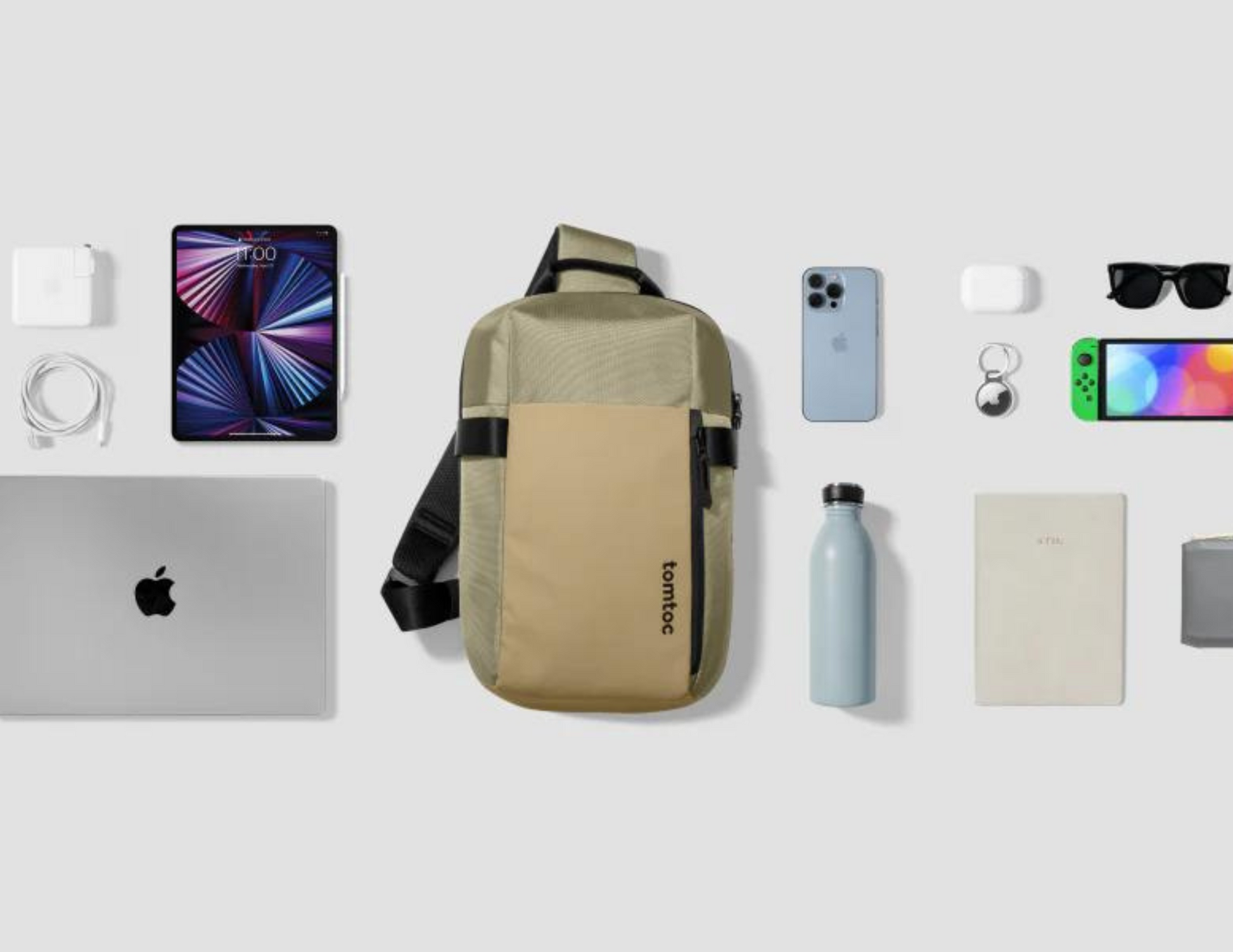 The Tomtoc Navigator-T24 Sling Bag is a compact yet spacious crossbody bag designed to fit your everyday essentials. Its minimalist urban design makes it ideal for city life, while its 7L capacity comfortably holds a 13-inch laptop, a 12.9-inch iPad Pro with a keyboard, and other travel accessories. The bag is crafted from eco-friendly, durable materials to ensure longevity.
