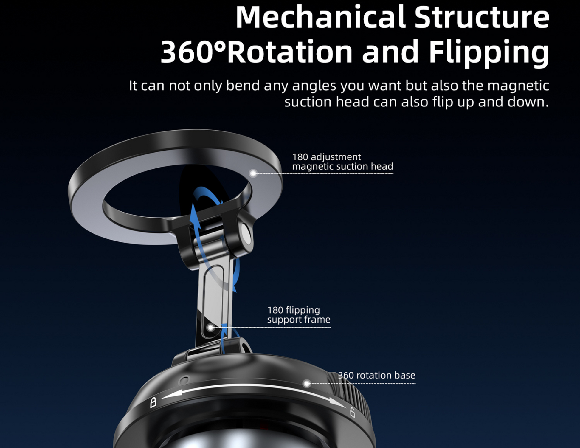 Vyvylabs MagLift 360° Rotator Car Mount (Suction Cup Version) VJCS-BK is the ultimate accessory for safe and convenient smartphone usage while driving. Its sleek design and practical features make it a must-have for every vehicle.