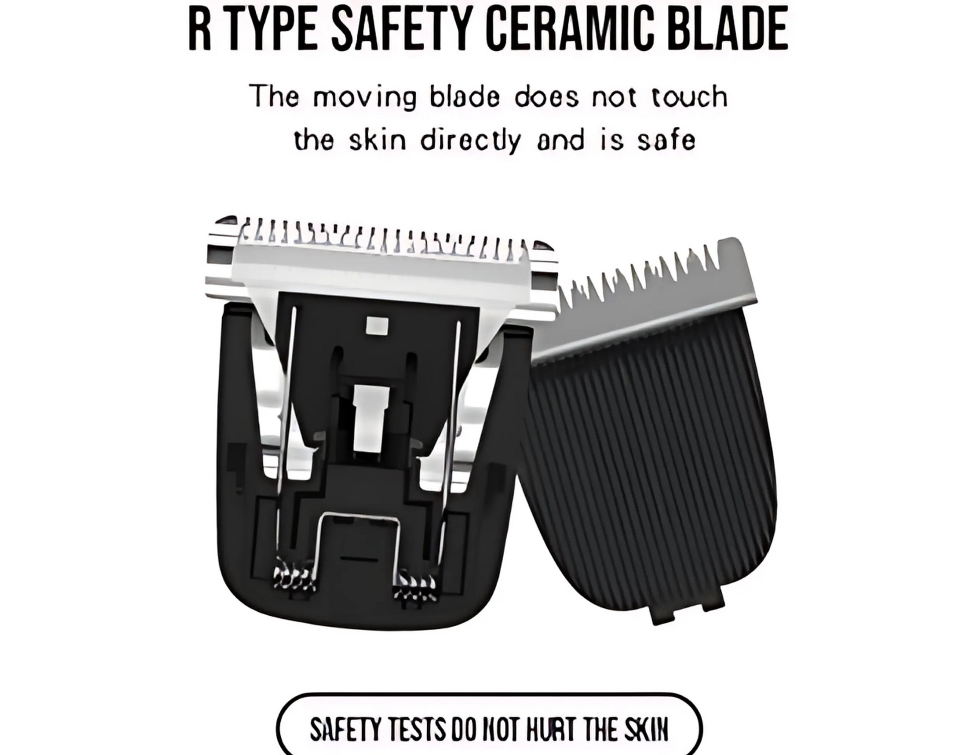 Featuring a R-type safety ceramic blade, the shaver’s moving blade doesn’t touch the skin directly, preventing nicks and snags. The replaceable ceramic blades maintain precision while the adjustable guard provides four length options for customizable grooming.